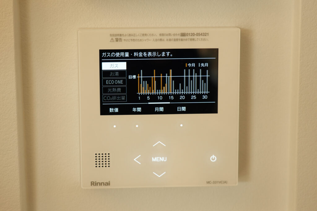 A: 「補助金」の活用が決め手となりました。 「GX志向型住宅」という補助金制度を利用するためには、一定の省エネ基準などをクリアする必要がありました。乾太くんのためにガスを導入することは決まっていましたが、その基準を一番簡単かつ確実に達成できる設備として、高効率給湯器である「エコワン」を選択する流れになりました。スマートフォンでもガス、電気、水道料を確認することができて便利です。